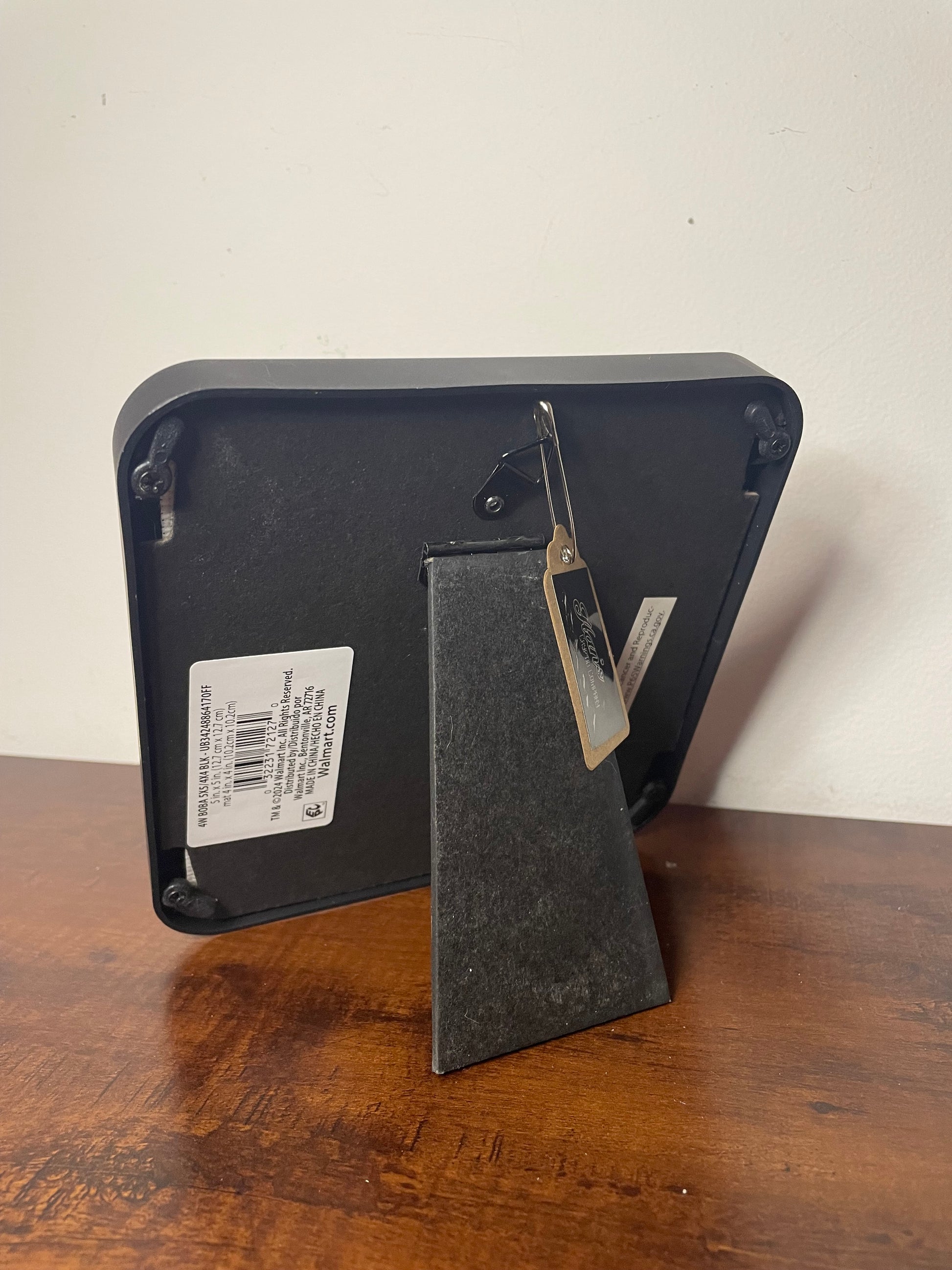 Loch Ness monster “bless this Ness” cross stitch in black square frame. Total frame measurements 5.5” x 5.5”. Can be stood up or hung on a wall. Original pattern (modified) by theStitchCrypt on Etsy.