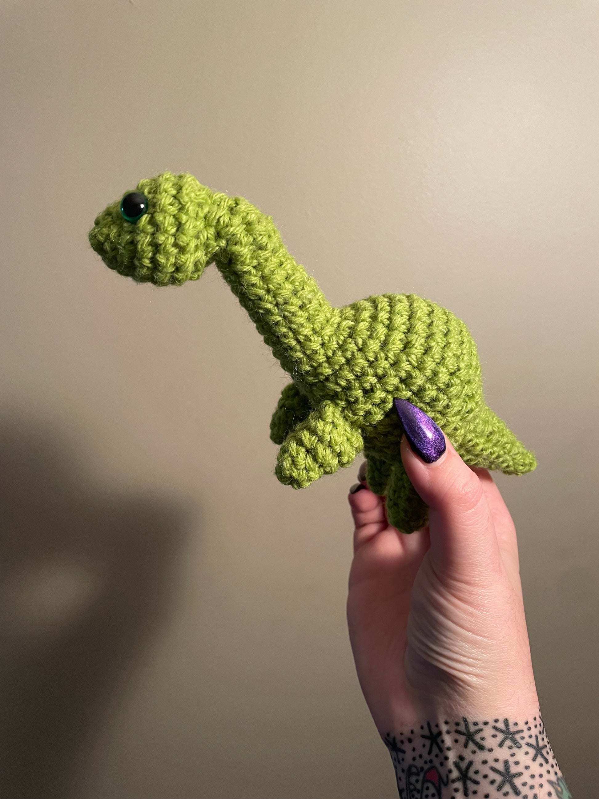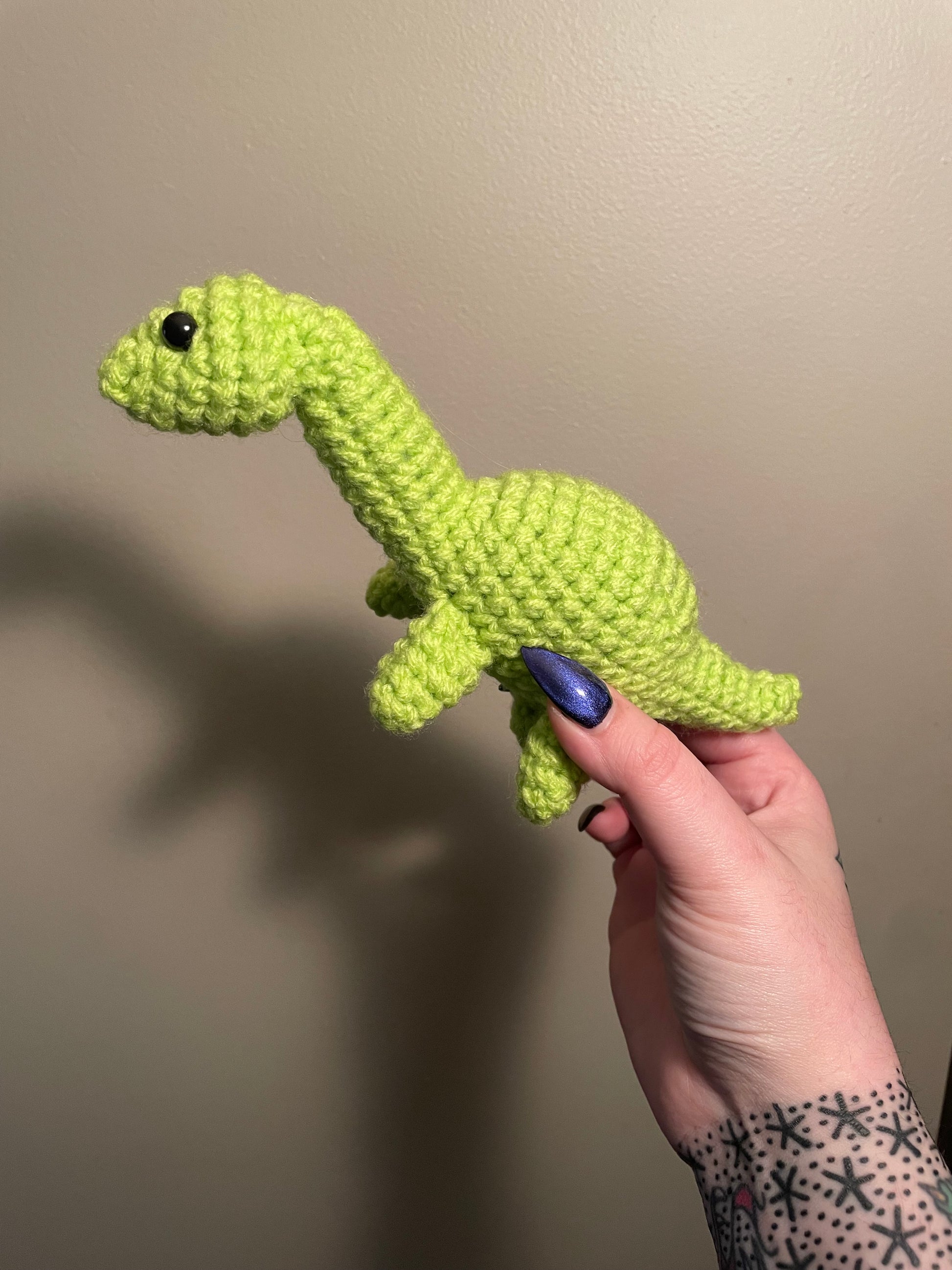*NOTE: Nessie has plastic eyes, and is not recommended for children under 3. Measurements may vary slightly due to the handmade nature of the product and variations in yarn weight.